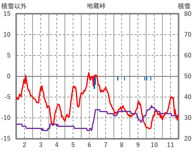 | 日 | 時 | 気温 | 降水 | 風向/風速 | 日照 | 積雪 | 降雪 |