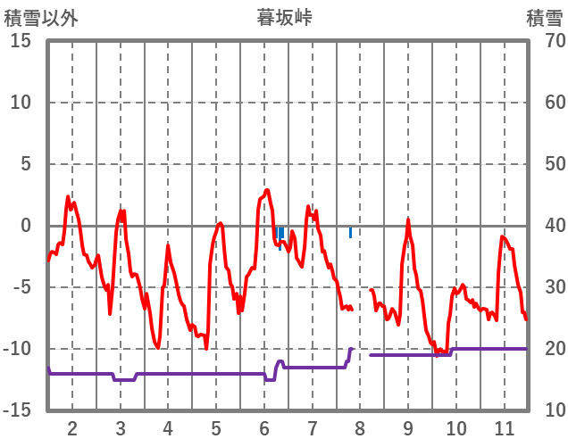 | 日 | 時 | 気温 | 降水 | 風向/風速 | 日照 | 積雪 | 降雪 |