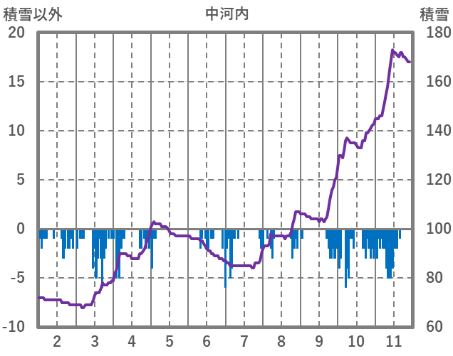 | 日 | 時 | 気温 | 降水 | 風向/風速 | 日照 | 積雪 | 降雪 |
