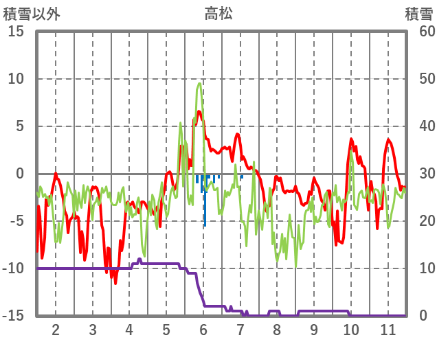 | 日 | 時 | 気温 | 降水 | 風向/風速 | 日照 | 積雪 | 降雪 |