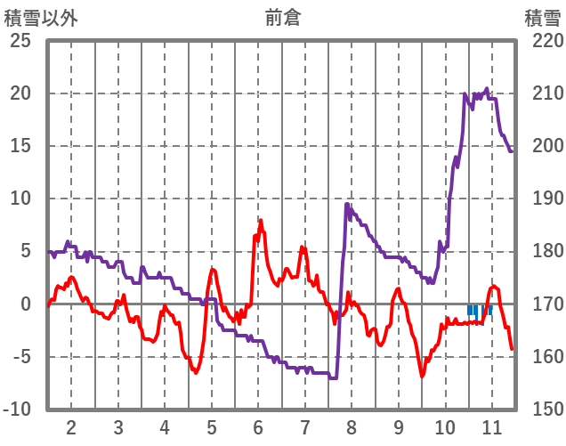 | 日 | 時 | 気温 | 降水 | 風向/風速 | 日照 | 積雪 | 降雪 |