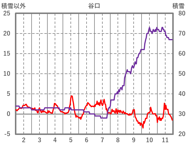 | 日 | 時 | 気温 | 降水 | 風向/風速 | 日照 | 積雪 | 降雪 |
