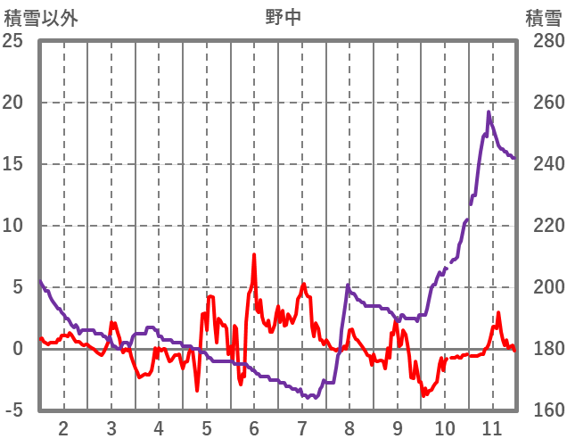 | 日 | 時 | 気温 | 降水 | 風向/風速 | 日照 | 積雪 | 降雪 |