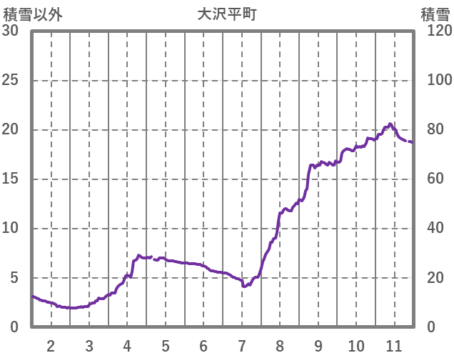 | 日 | 時 | 気温 | 降水 | 風向/風速 | 日照 | 積雪 | 降雪 |