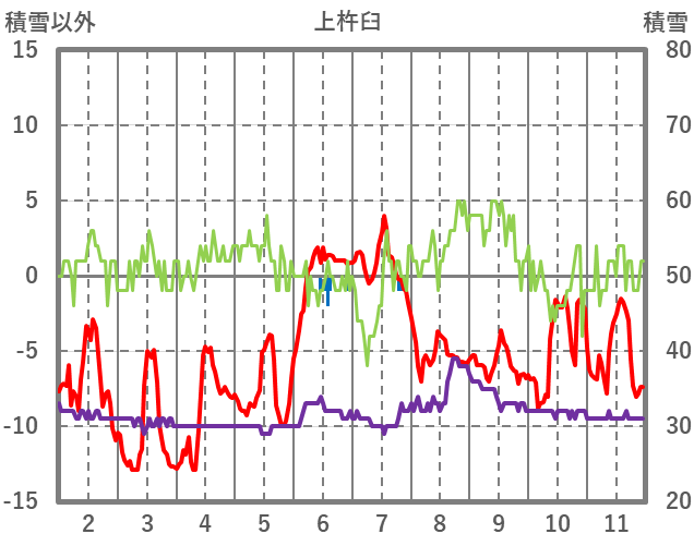 | 日 | 時 | 気温 | 降水 | 風向/風速 | 日照 | 積雪 | 降雪 |