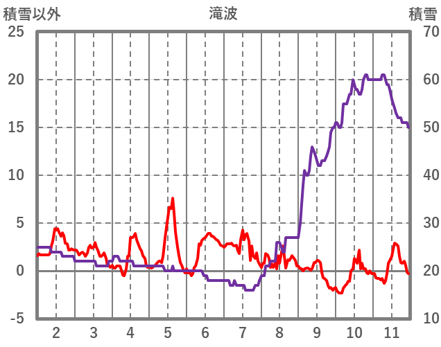 | 日 | 時 | 気温 | 降水 | 風向/風速 | 日照 | 積雪 | 降雪 |