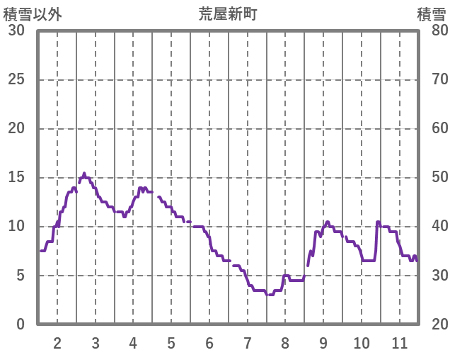| 日 | 時 | 気温 | 降水 | 風向/風速 | 日照 | 積雪 | 降雪 |
