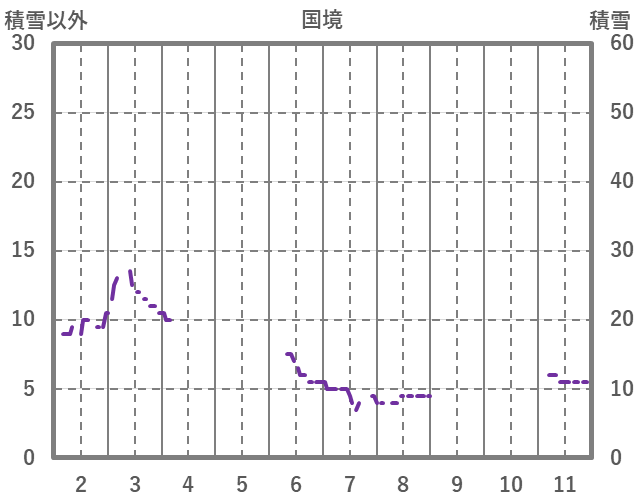 | 日 | 時 | 気温 | 降水 | 風向/風速 | 日照 | 積雪 | 降雪 |
