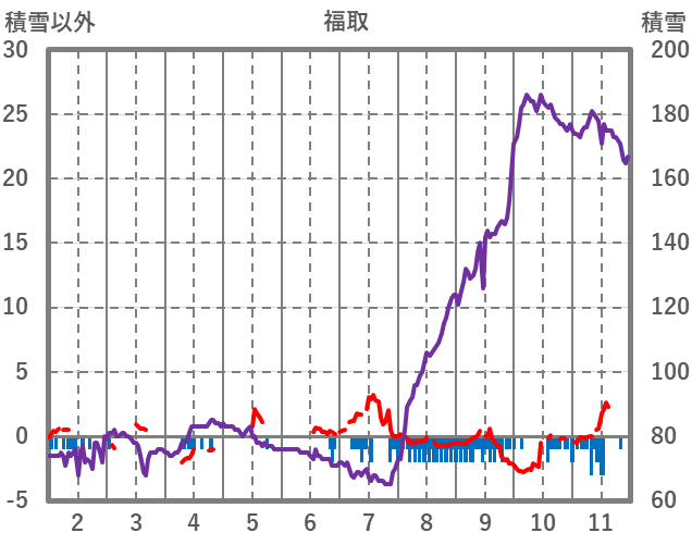 | 日 | 時 | 気温 | 降水 | 風向/風速 | 日照 | 積雪 | 降雪 |