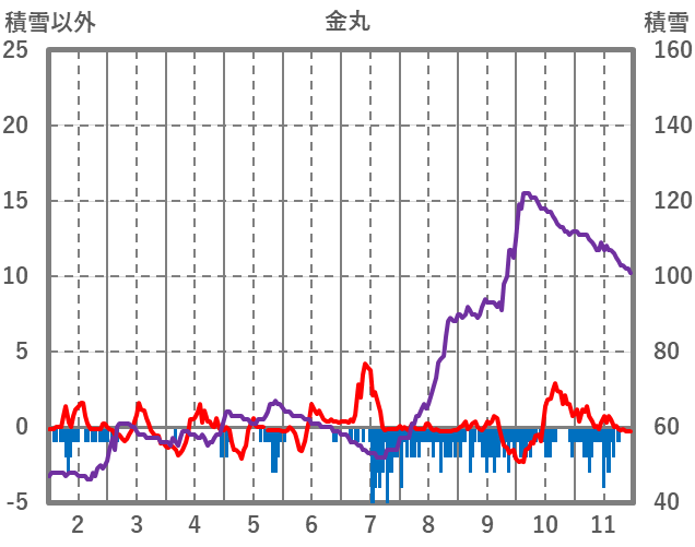 | 日 | 時 | 気温 | 降水 | 風向/風速 | 日照 | 積雪 | 降雪 |