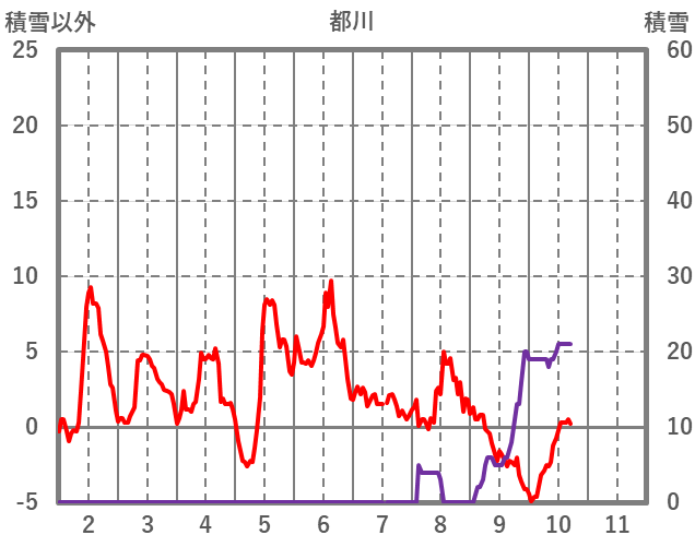 | 日 | 時 | 気温 | 降水 | 風向/風速 | 日照 | 積雪 | 降雪 |