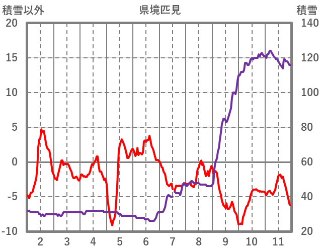 | 日 | 時 | 気温 | 降水 | 風向/風速 | 日照 | 積雪 | 降雪 |