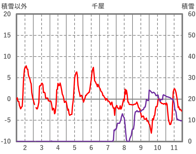 | 日 | 時 | 気温 | 降水 | 風向/風速 | 日照 | 積雪 | 降雪 |