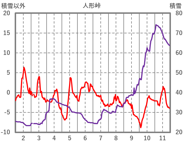| 日 | 時 | 気温 | 降水 | 風向/風速 | 日照 | 積雪 | 降雪 |