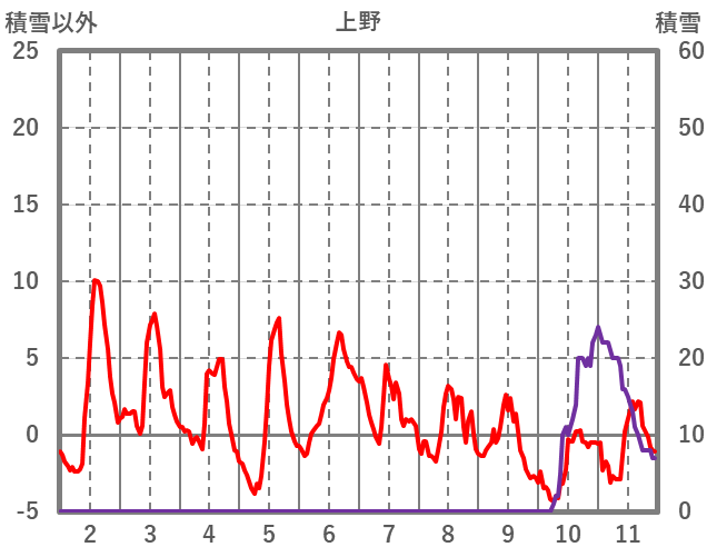 | 日 | 時 | 気温 | 降水 | 風向/風速 | 日照 | 積雪 | 降雪 |