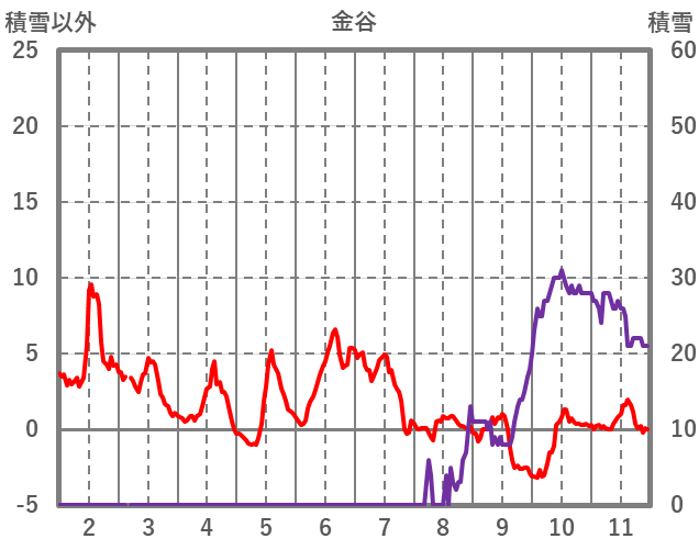 | 日 | 時 | 気温 | 降水 | 風向/風速 | 日照 | 積雪 | 降雪 |