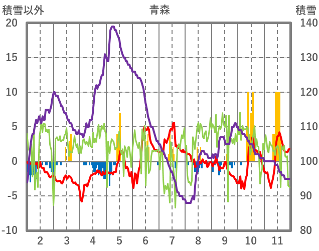 | 日 | 時 | 気温 | 降水 | 風向/風速 | 日照 | 積雪 | 降雪 |