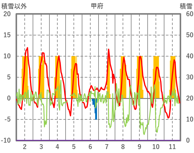 | 日 | 時 | 気温 | 降水 | 風向/風速 | 日照 | 積雪 | 降雪 |