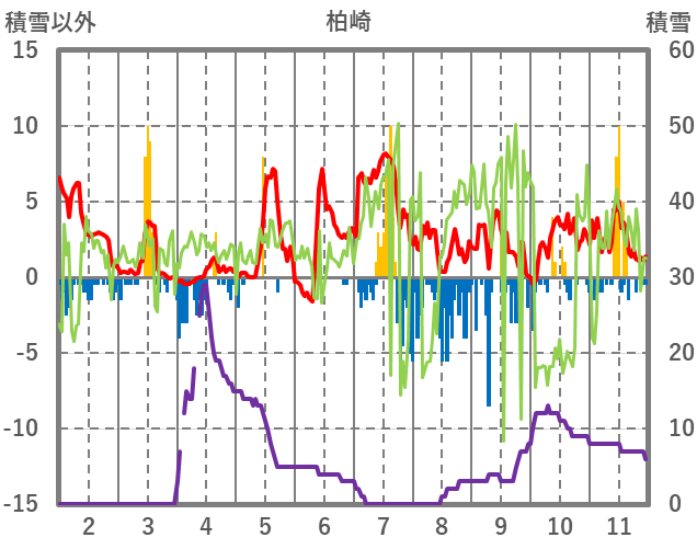 | 日 | 時 | 気温 | 降水 | 風向/風速 | 日照 | 積雪 | 降雪 |