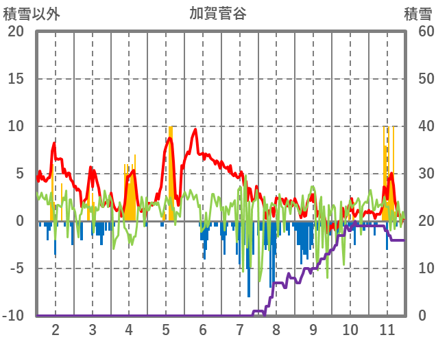 | 日 | 時 | 気温 | 降水 | 風向/風速 | 日照 | 積雪 | 降雪 |