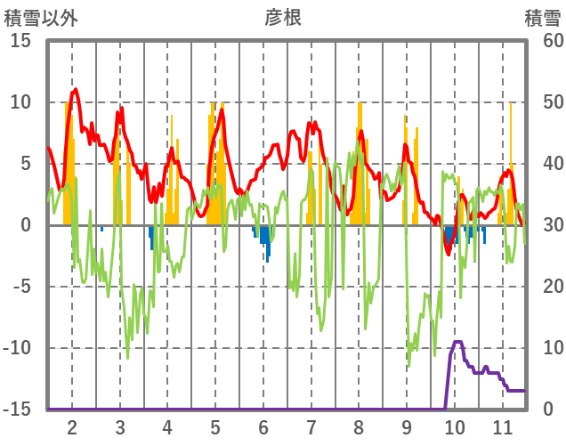 | 日 | 時 | 気温 | 降水 | 風向/風速 | 日照 | 積雪 | 降雪 |