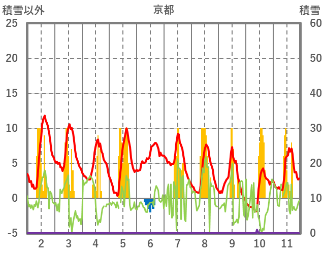 | 日 | 時 | 気温 | 降水 | 風向/風速 | 日照 | 積雪 | 降雪 |