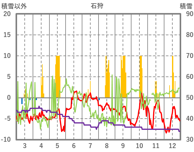 | 日 | 時 | 気温 | 降水 | 風向/風速 | 日照 | 積雪 | 降雪 |