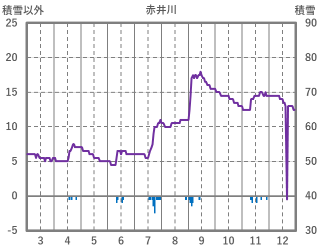 | 日 | 時 | 気温 | 降水 | 風向/風速 | 日照 | 積雪 | 降雪 |