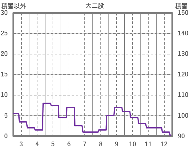 | 日 | 時 | 気温 | 降水 | 風向/風速 | 日照 | 積雪 | 降雪 |
