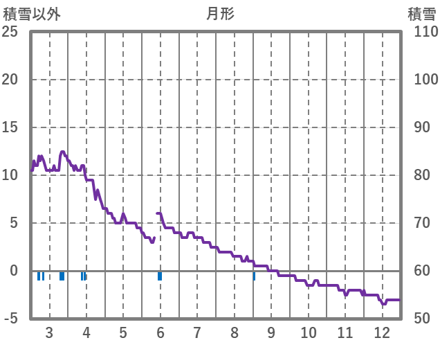 | 日 | 時 | 気温 | 降水 | 風向/風速 | 日照 | 積雪 | 降雪 |