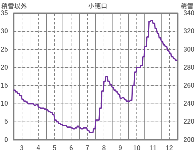 | 日 | 時 | 気温 | 降水 | 風向/風速 | 日照 | 積雪 | 降雪 |