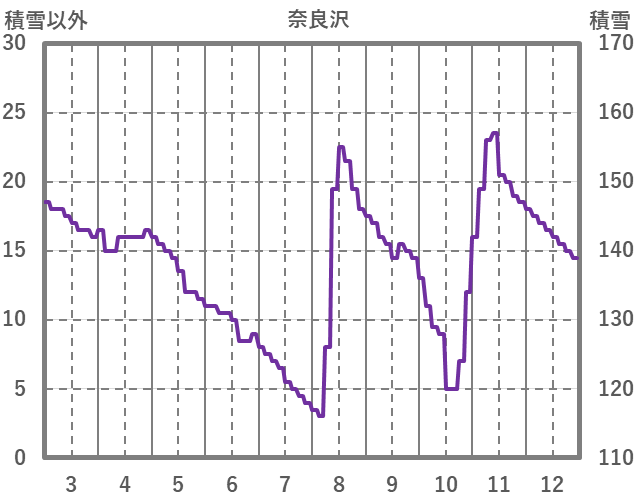 | 日 | 時 | 気温 | 降水 | 風向/風速 | 日照 | 積雪 | 降雪 |
