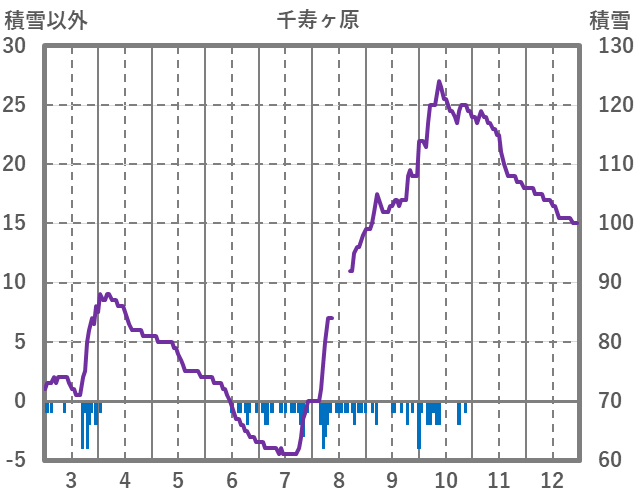 | 日 | 時 | 気温 | 降水 | 風向/風速 | 日照 | 積雪 | 降雪 |