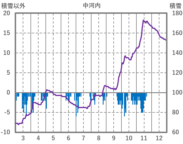 | 日 | 時 | 気温 | 降水 | 風向/風速 | 日照 | 積雪 | 降雪 |