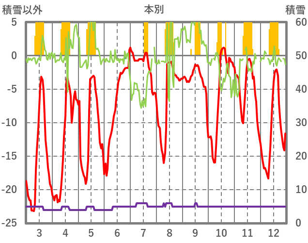| 日 | 時 | 気温 | 降水 | 風向/風速 | 日照 | 積雪 | 降雪 |