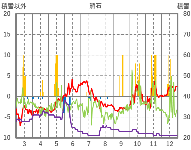 | 日 | 時 | 気温 | 降水 | 風向/風速 | 日照 | 積雪 | 降雪 |