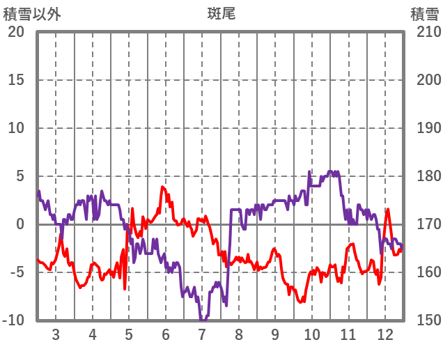 | 日 | 時 | 気温 | 降水 | 風向/風速 | 日照 | 積雪 | 降雪 |