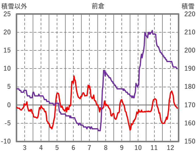 | 日 | 時 | 気温 | 降水 | 風向/風速 | 日照 | 積雪 | 降雪 |