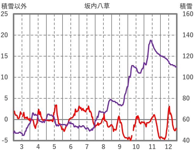 | 日 | 時 | 気温 | 降水 | 風向/風速 | 日照 | 積雪 | 降雪 |
