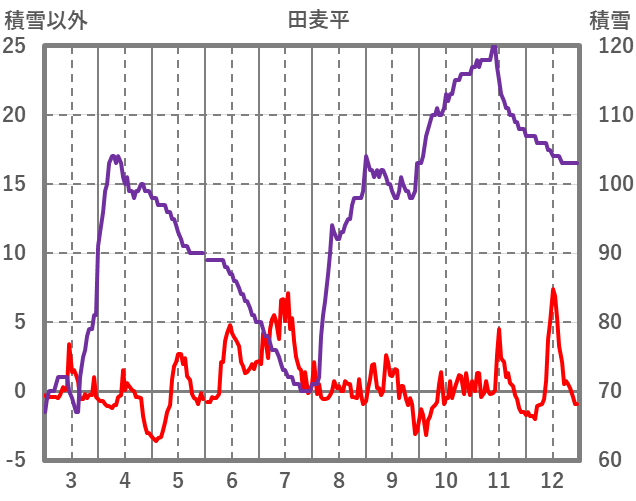 | 日 | 時 | 気温 | 降水 | 風向/風速 | 日照 | 積雪 | 降雪 |