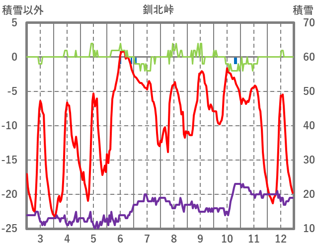 | 日 | 時 | 気温 | 降水 | 風向/風速 | 日照 | 積雪 | 降雪 |