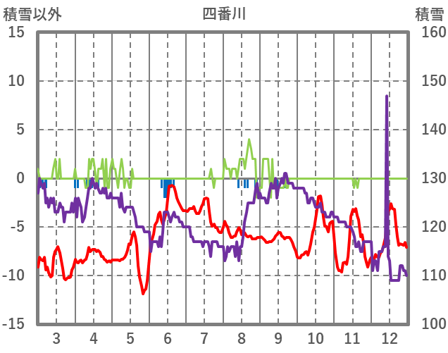 | 日 | 時 | 気温 | 降水 | 風向/風速 | 日照 | 積雪 | 降雪 |