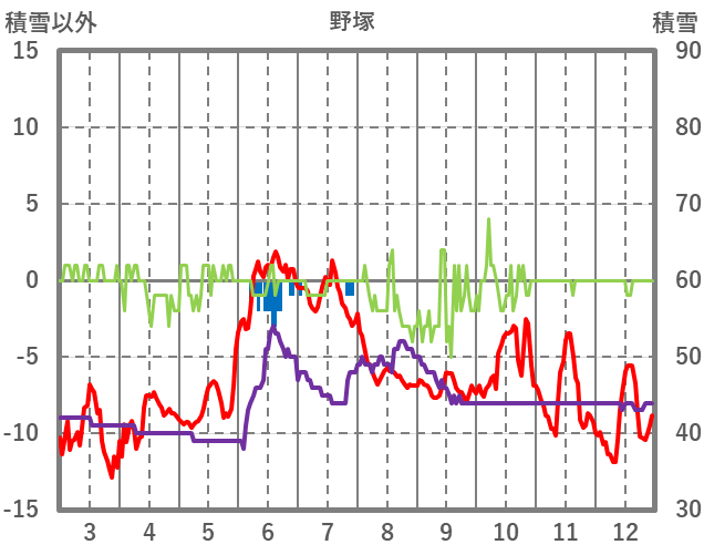 | 日 | 時 | 気温 | 降水 | 風向/風速 | 日照 | 積雪 | 降雪 |