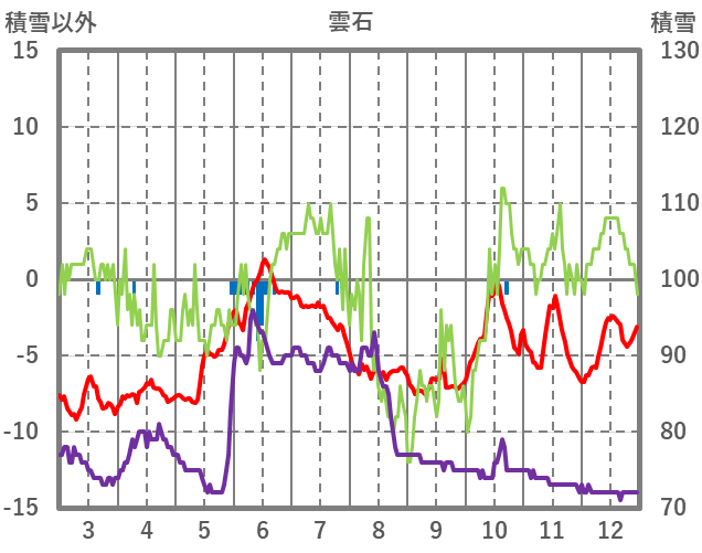 | 日 | 時 | 気温 | 降水 | 風向/風速 | 日照 | 積雪 | 降雪 |