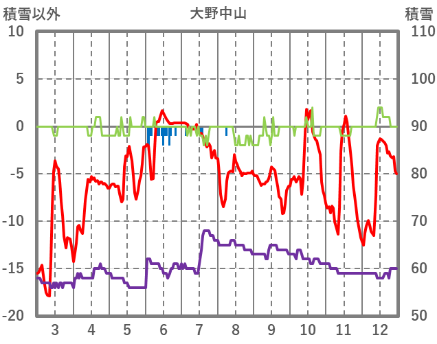 | 日 | 時 | 気温 | 降水 | 風向/風速 | 日照 | 積雪 | 降雪 |