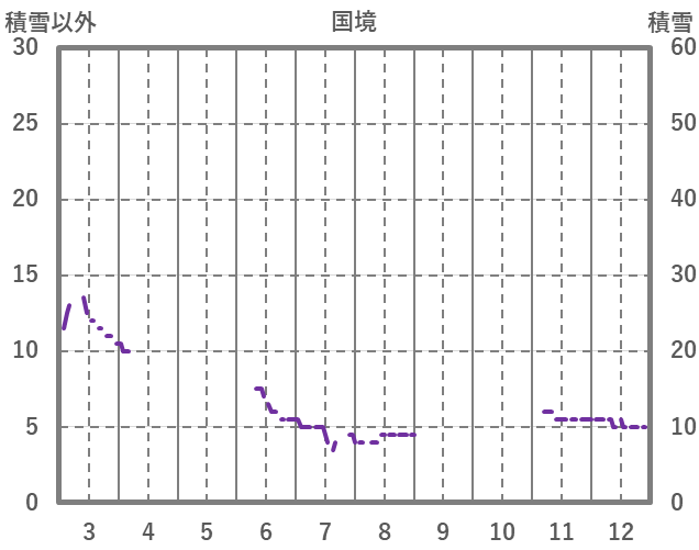 | 日 | 時 | 気温 | 降水 | 風向/風速 | 日照 | 積雪 | 降雪 |