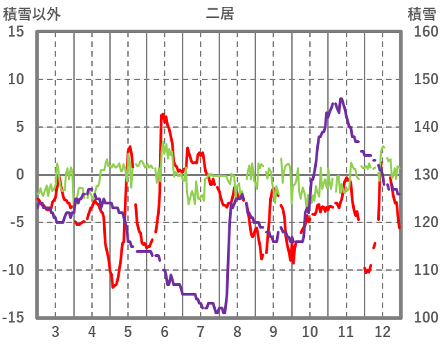 | 日 | 時 | 気温 | 降水 | 風向/風速 | 日照 | 積雪 | 降雪 |