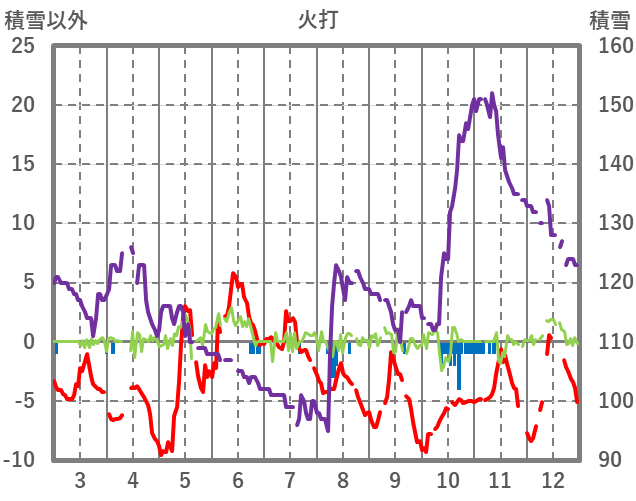 | 日 | 時 | 気温 | 降水 | 風向/風速 | 日照 | 積雪 | 降雪 |
