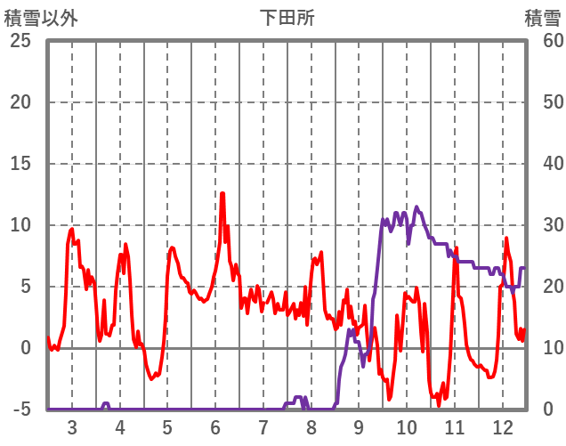 | 日 | 時 | 気温 | 降水 | 風向/風速 | 日照 | 積雪 | 降雪 |
