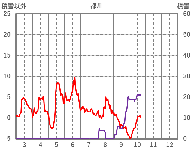 | 日 | 時 | 気温 | 降水 | 風向/風速 | 日照 | 積雪 | 降雪 |